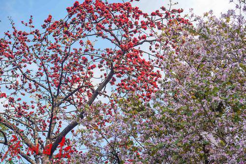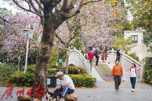 3月14日,广州天气晴好。春日的东山湖公园,木棉、宫粉紫荆、簕杜鹃等各色花朵盛放,榕树褪去旧叶、长出新叶,湖边柳树嫩绿的枝芽随风飘荡,步入园中,仿佛走进一幅色彩斑斓的画卷。东山湖水波光粼粼,倒映着湛蓝的天空、五彩的花朵和翠绿的树木,人们凭湖闲坐、漫步拍花,或是运动锻炼,尽情享受着这美好的春光。