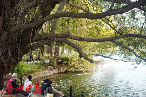 湖边的榕树在春日里褪去旧叶,长出新叶。
