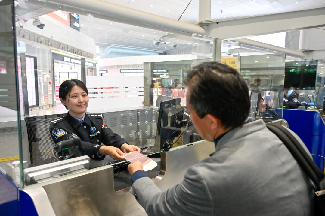 移民管理警察高效为旅客办理出入境通关手续