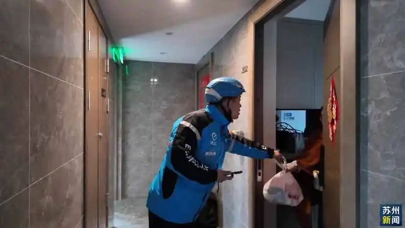 体验送餐中的张亥秋 图据苏州电视台