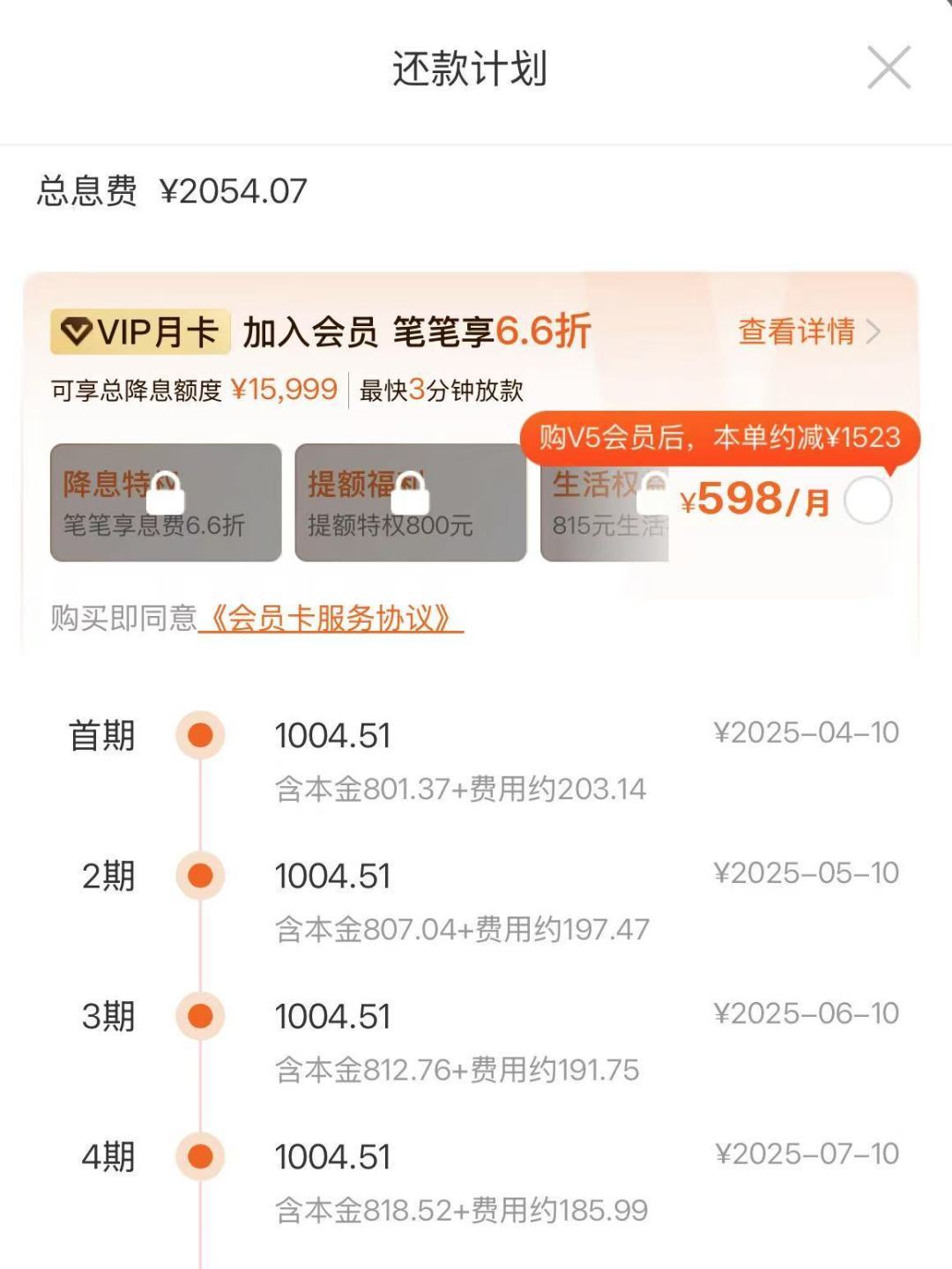 (平台显示加入会员可“降息”)