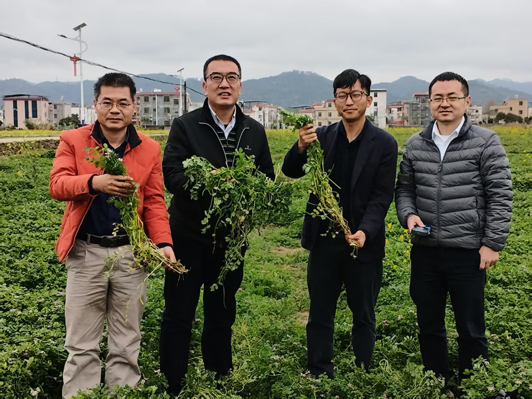 据介绍,该团队长期专注于绿色生态种养循环农业、稻田面源污染防控治理等领域的研究。近年来,他们聚焦华南地区农田土壤酸化、黏重、板结、瘦瘠等突出问题,紧扣冬闲田改良的技术需求,积极开展冬种绿肥(紫云英、油菜、黑麦草等)高效利用与种植技术创新研究。2024年,该团队与有关单位合作,开展广东省紫云英绿肥种植社会化服务项目,在粤东北地区的河源市、梅州市、汕头市、韶关市、潮州市、揭阳市等地推广冬种紫云英。项目实施期间,团队在绿肥选种、播种时间、施肥管理、病害防治等关键环节进行了深入研究和实践,构建了“五化一体”示范推广模式,有效提高了紫云英的种植效率和质量。