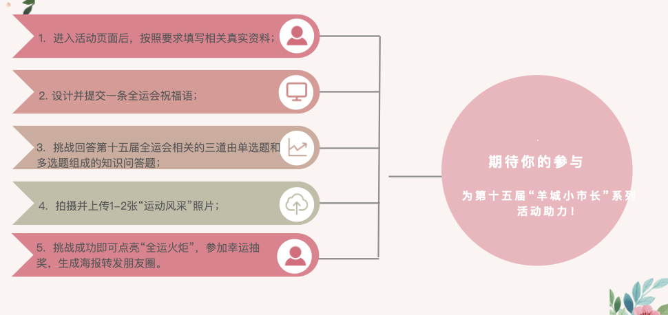 1996年“我为建设广州献一计”为主题的首届“羊城小市长”系列活动启动,迄今已举办30年,成为广州市未成年人思想道德建设的“金字招牌”。今年,“羊城小市长”系列活动举办至第十五届,主题为“激情十五运 活力耀羊城”,号召广大少年儿童以饱满的热情迎接十五运会,争做体育运动小达人。