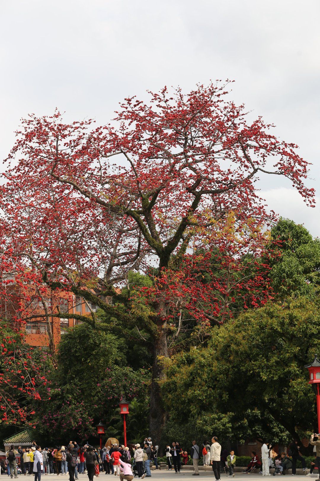 作为广州首批历史名园与古树公园,中山纪念堂园内29株木棉树全园均有分布,错落有致,既有常见的红棉热烈如火,亦有橙色和不常见的黄木棉点缀其间,为古朴庄严的建筑增添了灵动生机。园内摄影爱好者架起专业设备捕捉盛景,市民游客也举起手机定格与木棉的春日邂逅。在红棉映衬下,中山纪念堂的蓝瓦朱檐更显庄重,自然与人文的和谐交融,绘就出广州独特的城市画卷。