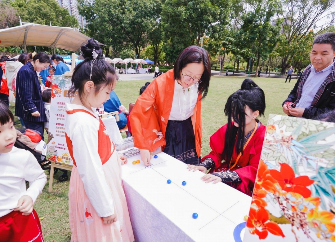 据介绍,本届广州花朝节通过两大文化体验场景,让传统节俗绽放时代光彩。在花朝舞台大赏上,花朝节活动主题小木棉IP首次亮相,憨态可掬的广州市花孵化为崭新的小木棉IP,化身可拥抱的城市伙伴,成为花朝节的文化使者。非遗运动会全民乐享,通过源远流长的非遗运动项目,以趣味互动活化传统技艺,升级互动体验项目,打造跨年龄文化游乐场。非遗剪纸窗花、糖画塑形、皮影戏角色创作、书法徽章绘制、猪笼入水、弹指江湖对决等,非遗运动会将濒临失传的匠艺,转化为亲子家庭指尖跃动的欢乐。非遗运动会还采用购买代币的活动消费新模式,打造穿汉服、用古币、玩传统运动的消费新场景。