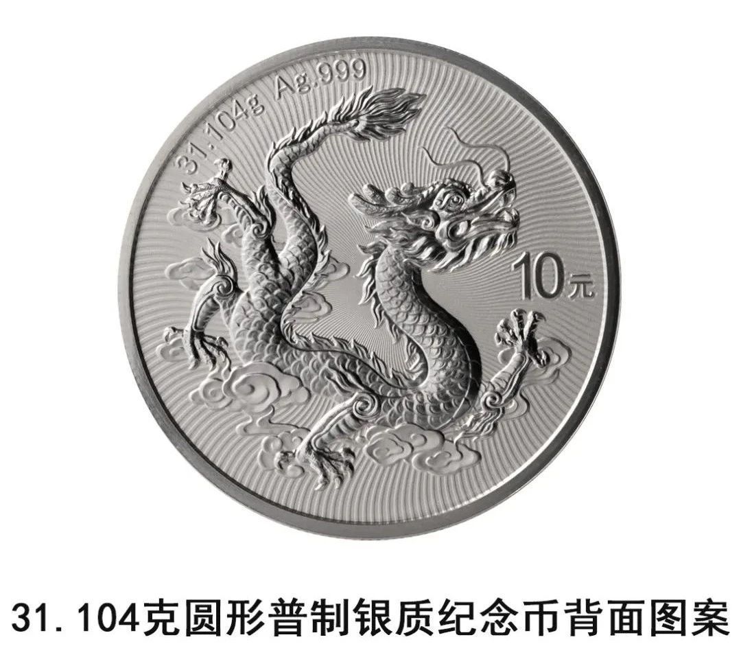 该枚银质纪念币背面图案为中国龙形象,辅以祥云图案组合设计。
