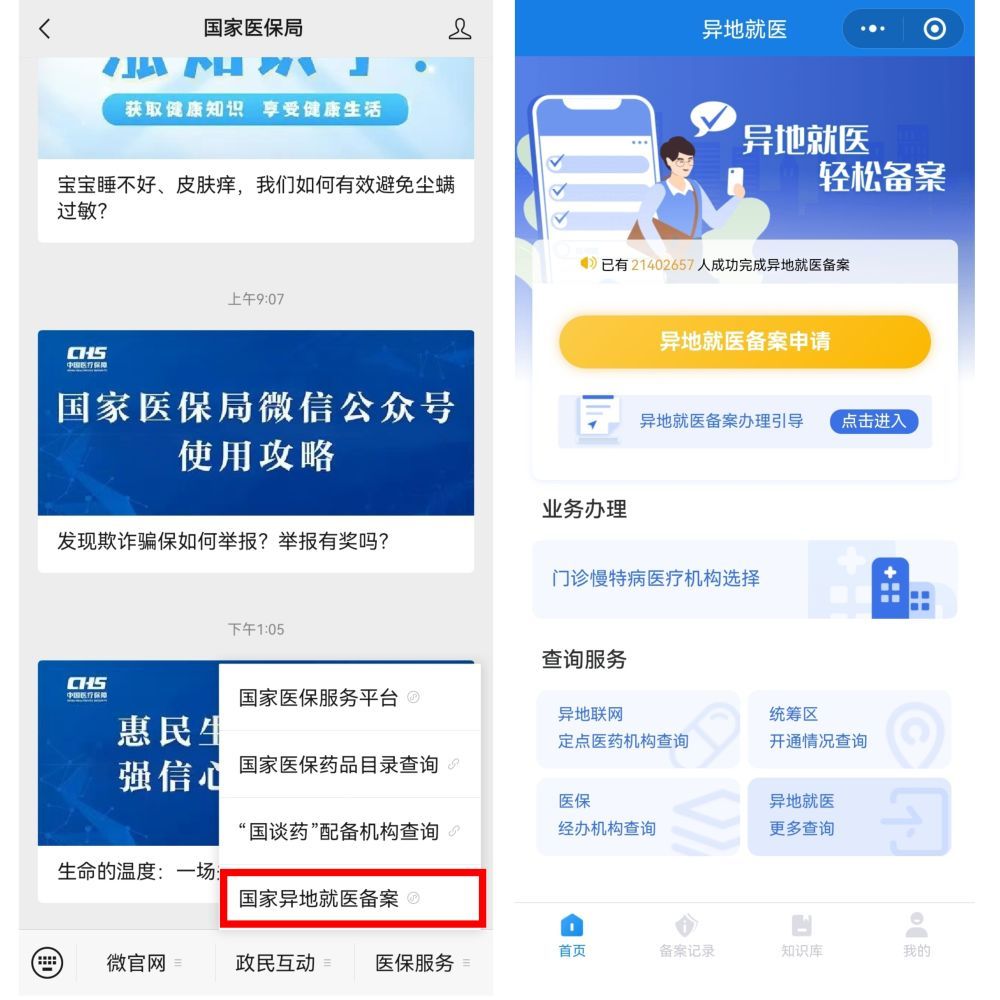 跨省异地长期居住或跨省临时外出就医的参保人员,办理异地就医备案后,可以享受跨省异地就医直接结算服务。记者从国家医保局了解到,国家医保局微信公众号已开通异地就医备案办理功能。符合条件的参保人员只需简单几步操作,即可完成跨省异地就医备案,并在异地就医时实现直接结算。