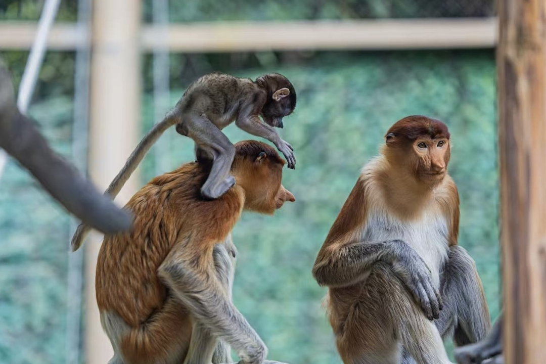 近日,国内最大的长鼻猴迁地保育基地——长隆野生动物世界传来喜讯,新生长鼻猴幼崽“迎春”和“纳福”首次与游客见面。这标志着自2017年长鼻猴家族“入住”广州以来,长隆在长鼻猴繁育领域再次取得显著成果。
