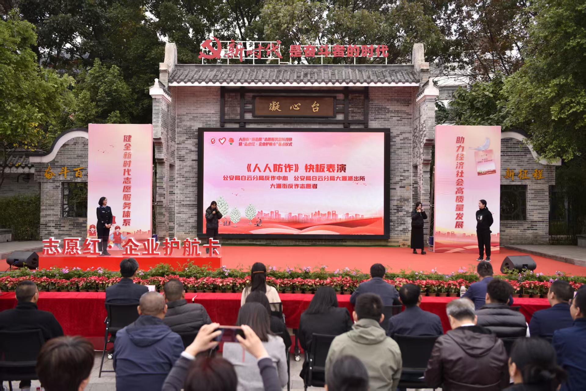 信息时报讯(记者 何家贵 通讯员 大源宣)山歌传唱志愿红、醒狮舞动植树绿、武术展示健康美、形成“1+6+N”志愿服务工作矩阵、颁发“志愿红·企业护航卡”……3月17日,广州市白云区大源街“源志愿”志愿服务总队授旗暨“志愿红·企业护航卡”发布仪式现场,不仅有本土非遗群体助阵,成立1支志愿服务总队和6支分队,还首发“志愿红·企业护航卡”,多方力量汇聚成大源街志愿服务事业工作合力,助力经济社会高质量发展。