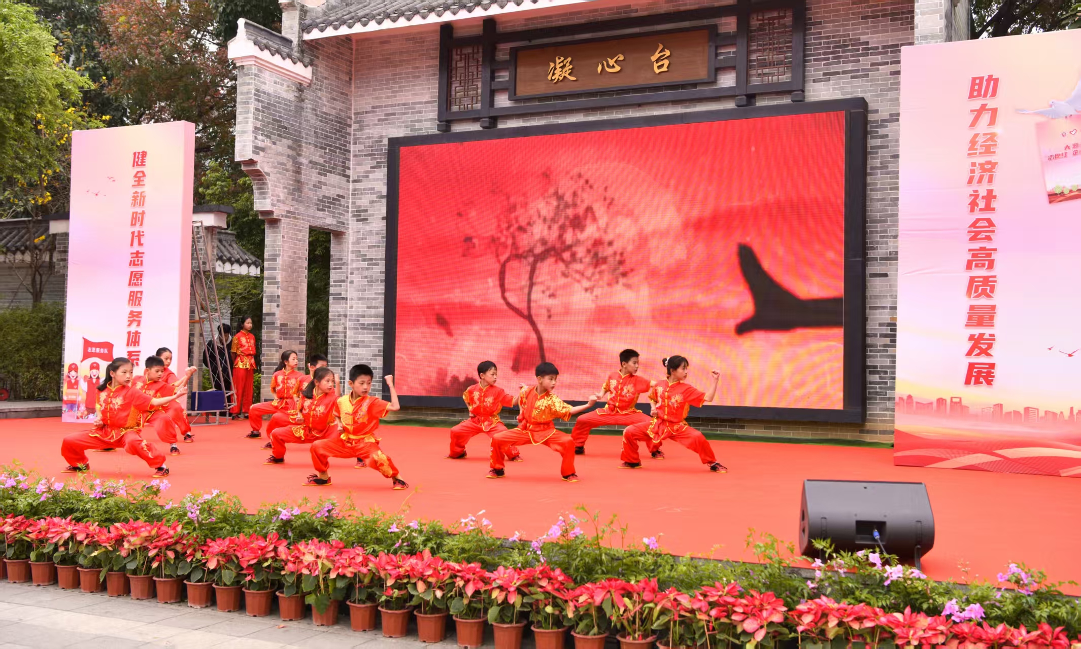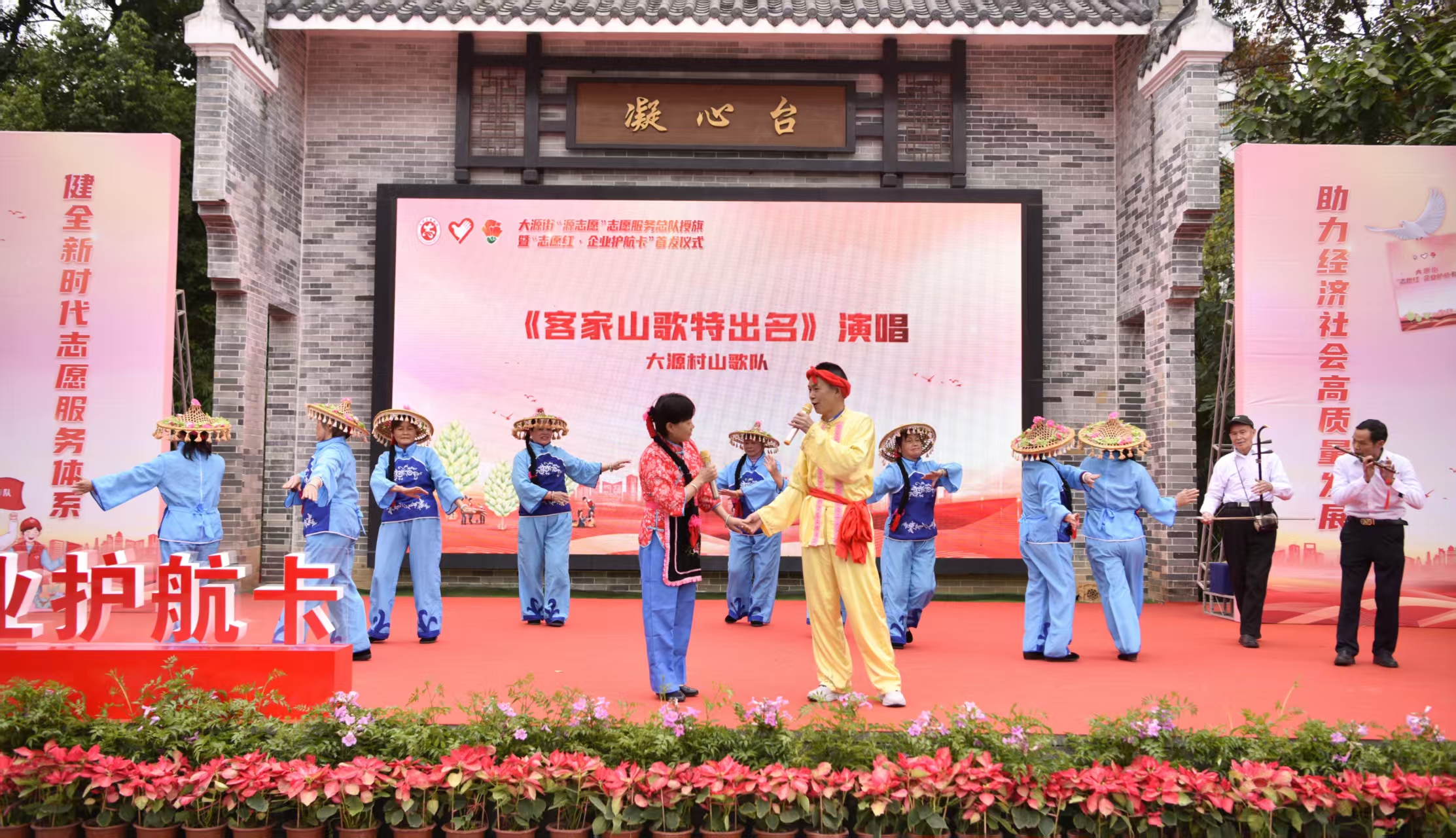 现场,大源街组织大源村、石湖村、石湖小学、白云区武术协会、广州涉外经济职业技术学院,以及防诈队伍的专业、专长人员,将本土非遗文化传承融入志愿服务,轮番展演客家山歌、武术、醒狮、防诈快板、四重唱等节目,号召更多市民街坊加入志愿服务队伍,弘扬中华民族优秀传统文化,丰富社区邻里精神文化生活,为乡村振兴、推广小而美的身边志愿服务、“百千万工程”增光添彩。