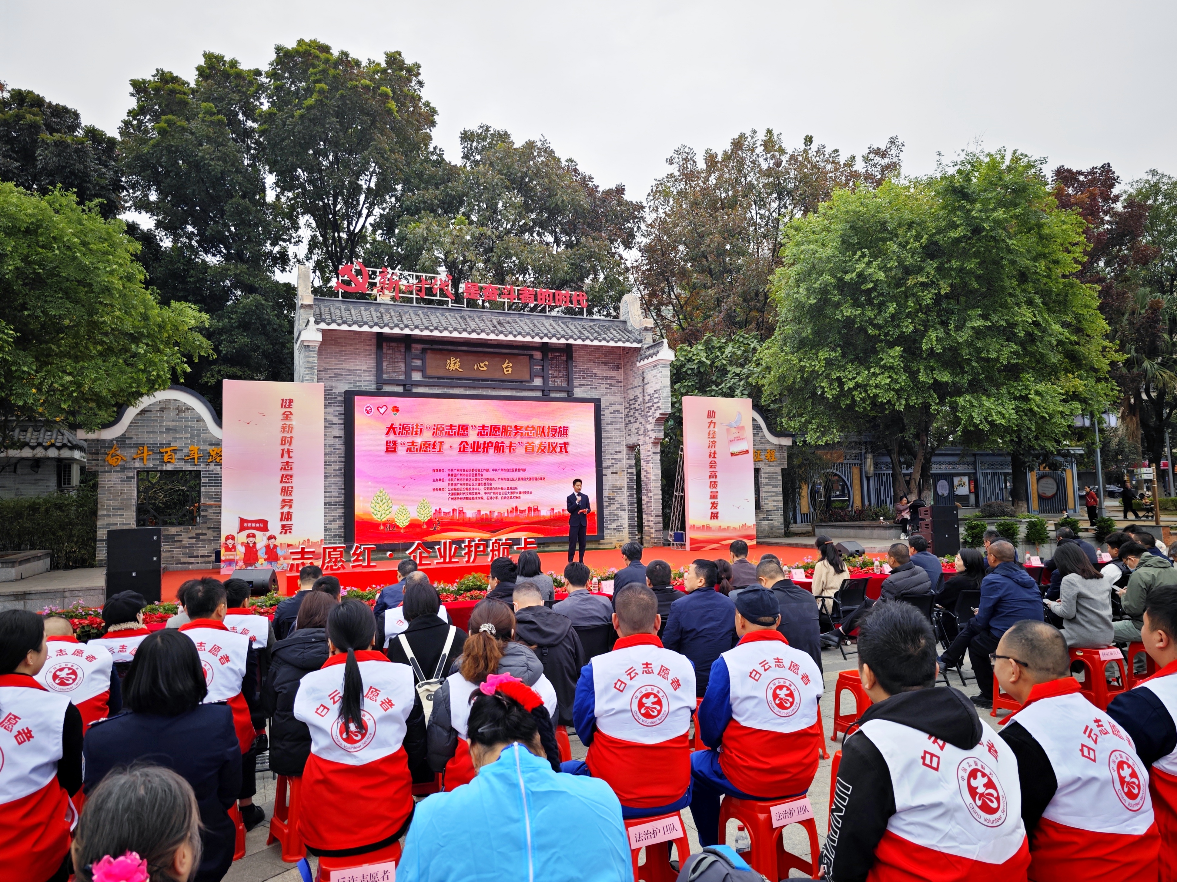大源街志愿服务总队及分队授旗仪式。信息时报记者 郭柯堂 摄