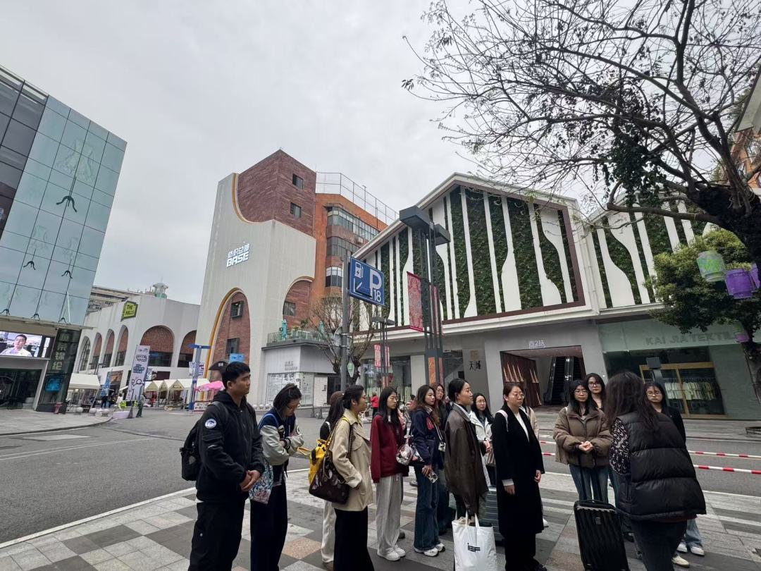广州中大门作为全国规模领先的纺织产业综合体,集聚面辅料总部、高级制版师工作室、原创品牌服装总部等全供应链与数智化资源。学子们穿梭于生活美学商业街区“城市之丘”,直观感受潮流氛围,深入了解从丝绸到智能面料的产业跃迁,以及数字化技术为纺织服装企业提供展贸、设计版坊、原创品牌、潮流发布、数智化等一站式服务。