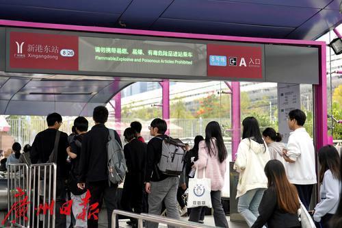为应对大客流,广州地铁科学部署,八号线在高峰时段增加运力,最小行车间隔分别缩短至3分12秒和4分26秒,四号线超高峰期行车间隔缩短至2分45秒。同时,地铁运营部门密切监控客流变化,及时调整运输能力,确保通行顺畅。 除了运力保障,广州地铁还升级服务品质。新港东站设立现场指挥部,推出12项服务措施,包括设置咨询台、自助免费打印区,提供彩色打印机、文具等物资,满足求职者打印简历的需求。
