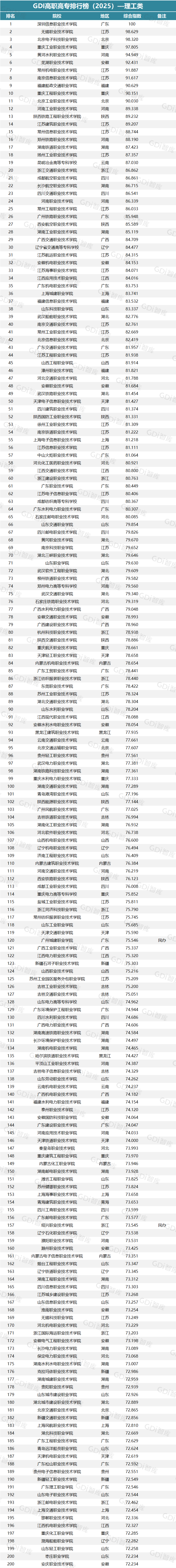 GDI高职高专排行榜(2025)—理工类榜单中,深圳信息职业技术学院、无锡职业技术学院、北京电子科技职业学院位列前三,同时跻身总榜前三。