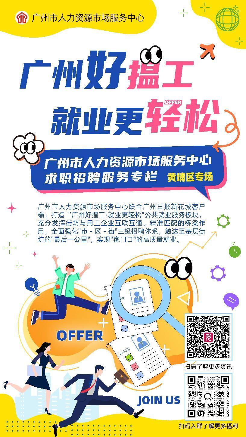 广州市人力资源市场服务中心联合广州日报新花城客户端,打造“广州好揾工·就业更轻松”公共就业服务板块,充分发挥街坊与用工企业互联互通.精准匹配的桥梁作用,全面强化“市-区-街”三级招聘体系,触达至基层街坊的“最后一公里”,实现“家门口”的高质量就业。以下是黄埔区新鲜出炉的招聘信息,一起来看看吧!