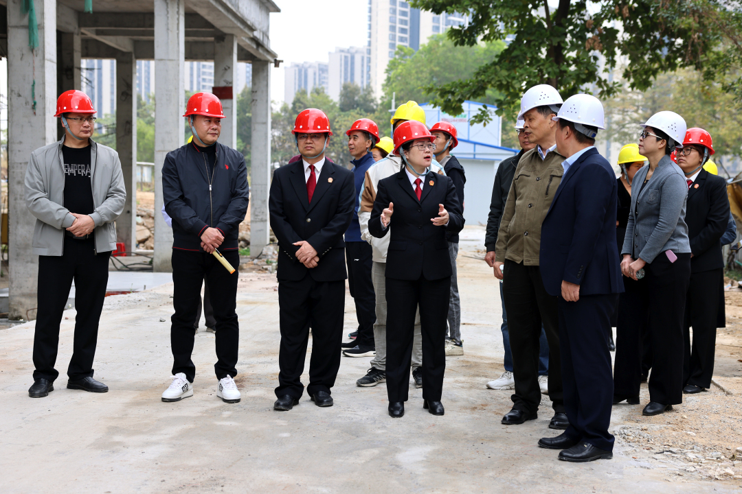 高明法院破产审判团队与业主代表、承建方等正在实地查看楼盘建设情况