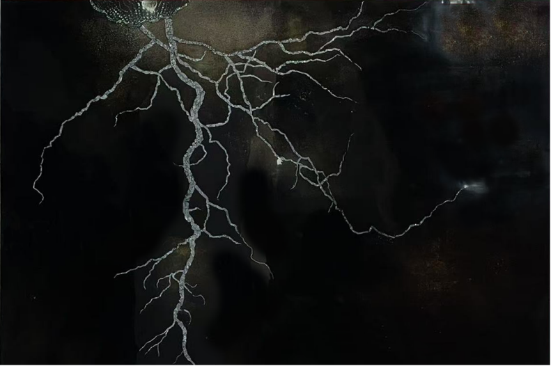 装饰画《对话》灵感源自闪电瞬间的爆发力,将仅 0.1毫米的螺钿薄片巧妙镶嵌于大漆基底之上。匠人们凭借精湛的手工技艺精心拼嵌出雷暴凌厉的肌理。当光线在其上流转,呈现出梦幻般的彩虹光芒。作品传承了中国传统的螺钿镶嵌工艺,体现出非遗元素在当代家居空间中的全新适应性。