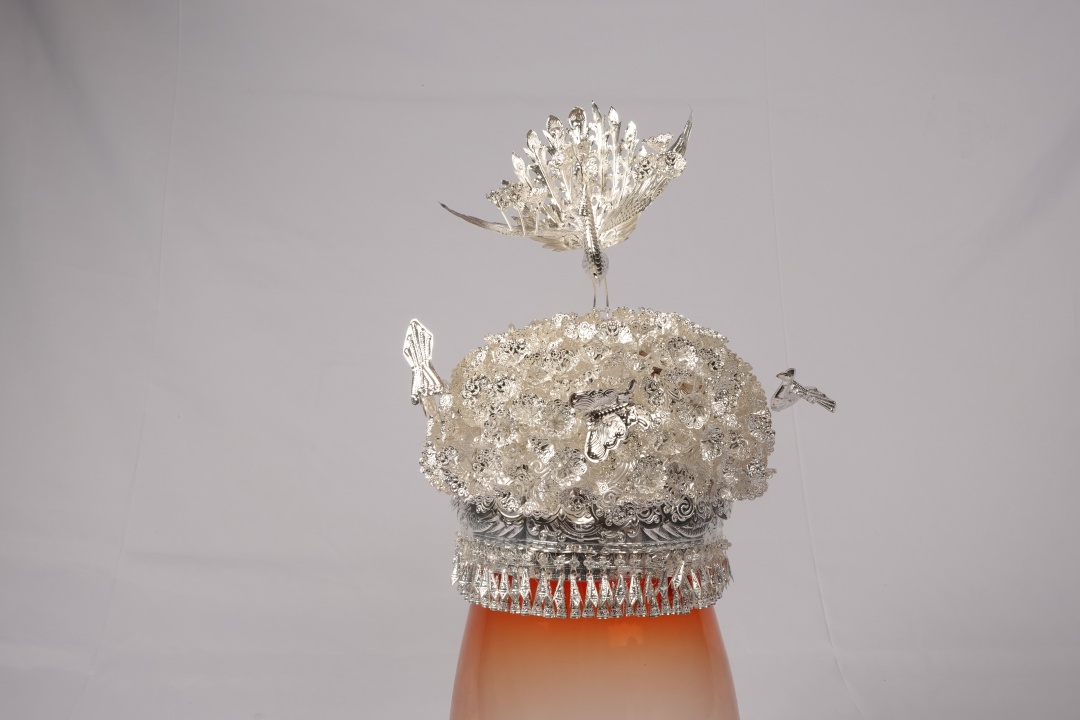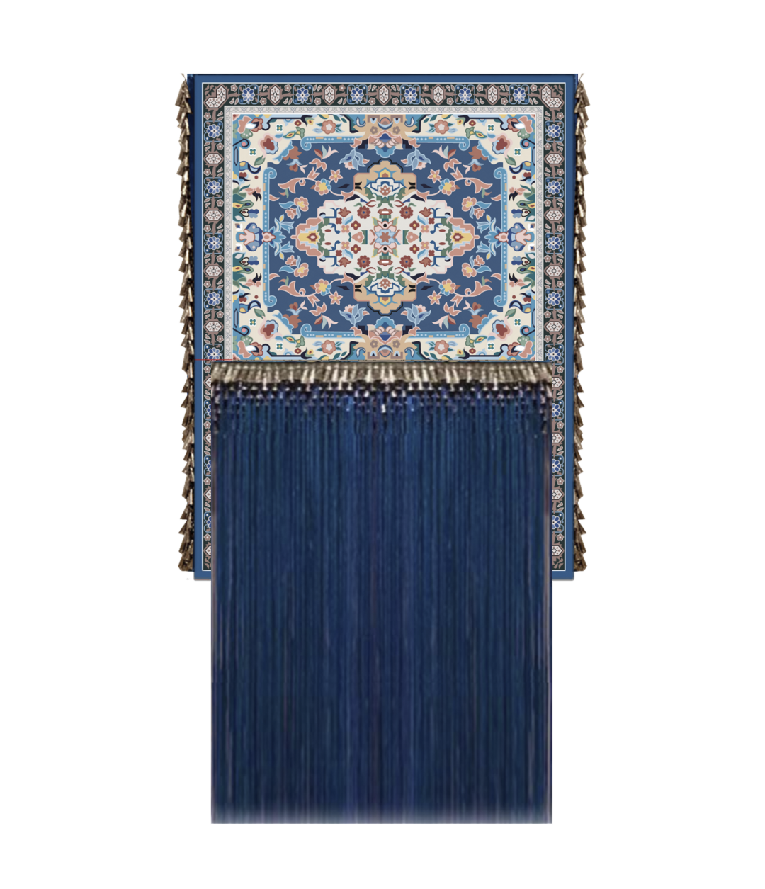 《银缀锦绣》挂毯将苗族图腾与现代编织工艺融合,羊毛、竹纤维与银饰流苏相互交织,在经纬之间演绎着非遗的当代传承。
