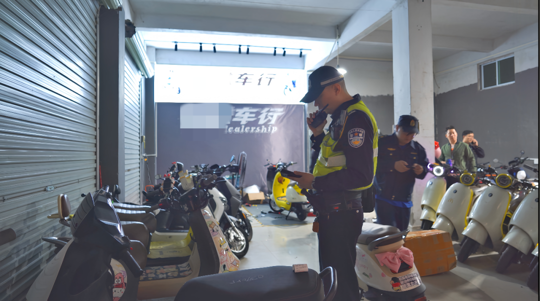 3月11日下午,花都公安通过大数据研判和实地摸排,锁定狮岭镇合成村一摩托车、电动车非法改装窝点。当晚,警力蹲守后突击检查,发现该窝点存在大规模非法改装行为。车行负责人何某等4人因涉嫌非法改装被刑拘,毛某因“翘头炫技”被行拘7日。