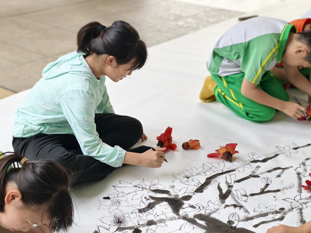 活动还邀请了广州市书画名家彭国祥、关胜祥、曾海亮、林锦添、郭超华、冼一凡等专家现场指导。他们与孩子们一同观察木棉的姿态,示范水墨技法,从构图到笔触,从意境到精神,将红棉的形神之美与英雄气概娓娓道来。