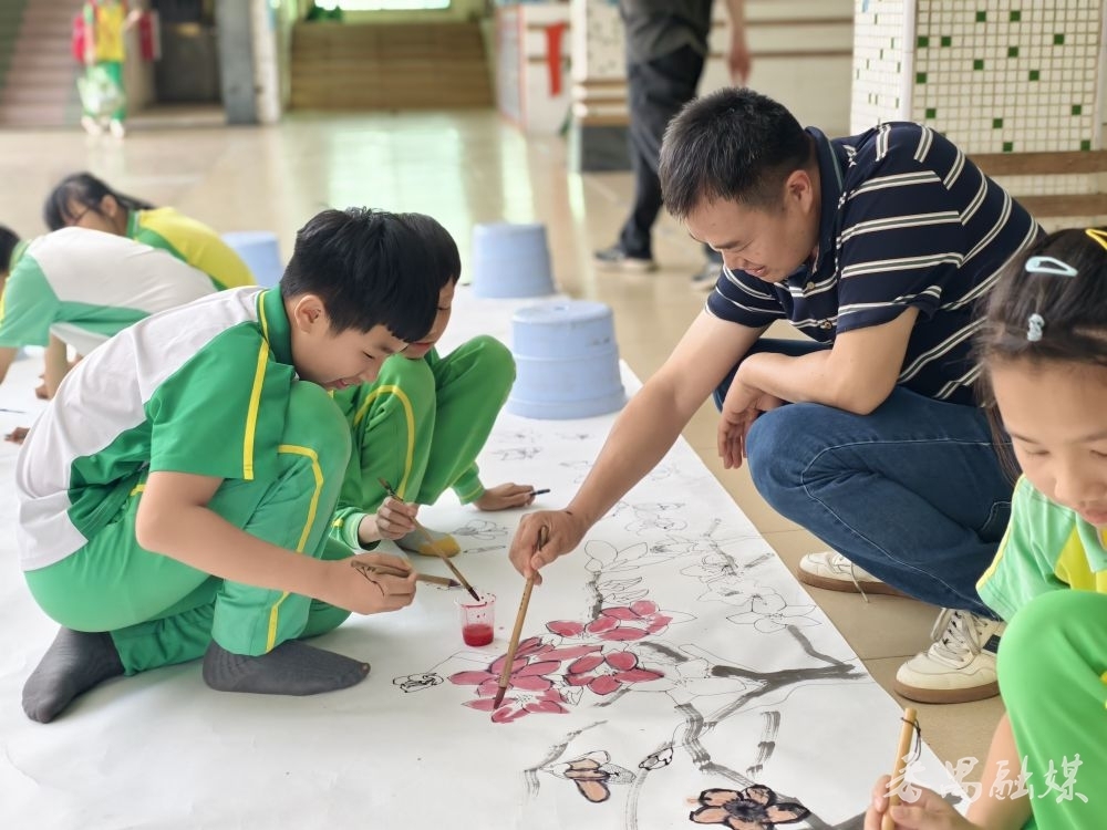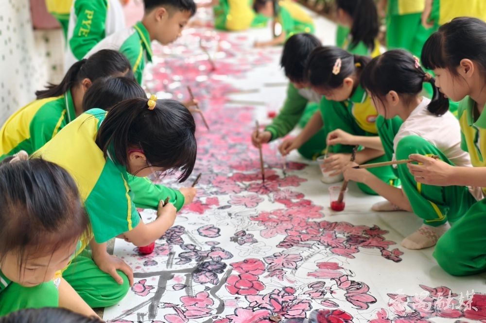 木棉作为岭南“英雄花”,其挺拔不屈、赤诚如火的风骨,恰是红色精神的最佳象征。石碁镇海傍小学积在广州市番禺区中小学美术教研会、广州市美术家协会“文艺两新”艺术委员会、番禺区文化馆的联合指导下,以校园内盛放的红棉为媒,将传统水墨艺术与红色教育深度融合,通过师生共绘长卷的形式,让红色文化浸润童心,让艺术实践传递信仰力量。