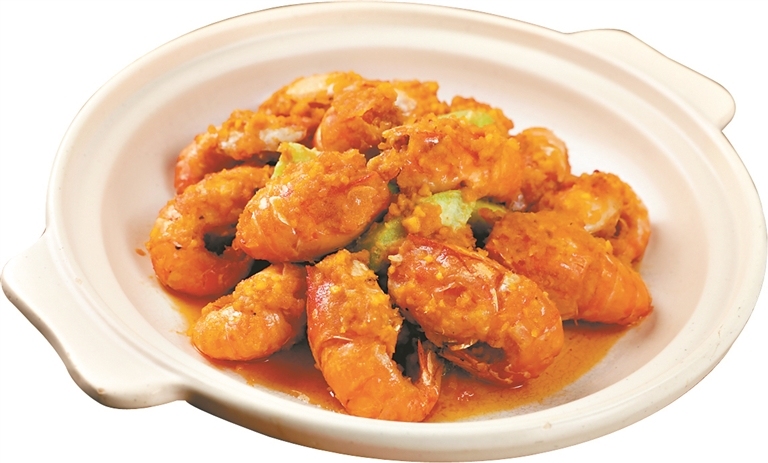 记者翻开菜单,发现粤菜与日本料理最大的不同,在于菜单上的菜肴种类繁多。广州酒家厨艺“第六代传人”代表麦展飞告诉记者:“仅基本菜单上就有100多种菜品,而且会随着季节变化而有很大变化。尽管变化速度很快,但大虾料理已经流行了20年。”紧接着,麦师傅带记者参观了厨房。宽敞的厨房干净整洁,炊具摆放整齐。一位年轻的厨师正在大锅里炒菜,火苗冉冉升起,他们在做的便是招牌菜“霸王酱焗罗氏虾”——将咸蛋黄和韭菜油放入搅拌机中搅拌至泥状,然后加入调味料制成酱汁;罗氏虾切去虾腿,剖开虾肚,用沸水祛除杂味,然后放入150℃的油中炸至外壳酥脆;在酱汁中加入黄油,用小火加热,然后放入大虾翻炒。麦师傅指出这道菜的“技术难点”:“如果火太大或者太小,味道都不好。”厨师一边有节奏地煎炸食物,一边用脚下杠杆调节燃气灶的火力,大约10分钟后,这道金黄色的美食就做好了。粤菜烹饪最讲究食材的口感和新鲜程度。正如麦师傅所言,大虾清淡爽口,口感极佳,令人愉悦。蛋黄酱香甜浓郁,但也能品尝到大虾的鲜甜。