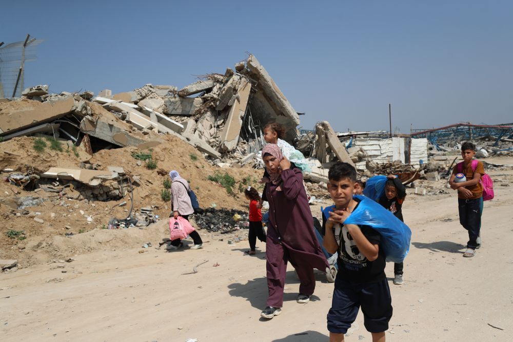 3月18日,被迫逃离加沙地带北部拜特哈嫩的巴勒斯坦民众经过加沙城。新华社发(马哈茂德·扎基摄)
