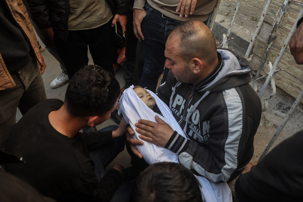 3月18日,在加沙地带北部加沙城的一所医院内,人们哀悼以军空袭的遇难者。新华社发(里泽克·阿卜杜勒贾瓦德摄)