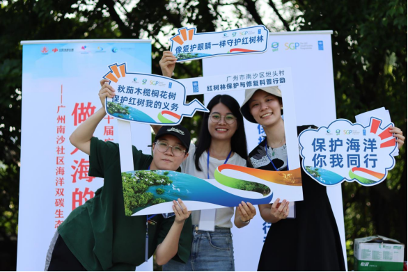 广州市南沙区坦头村红树林保护与修复科普行动志愿者打卡合影。通讯员供图