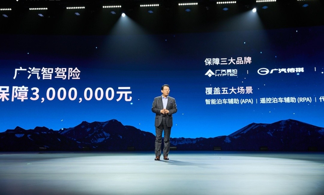 (广汽集团董事长、总经理冯兴亚宣布将推广汽智驾险。)