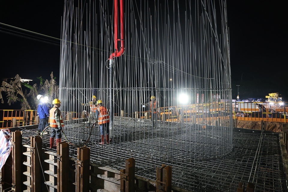 为保障首个承台顺利浇筑,项目团队严格执行“首件验收”制度,从钢筋绑扎、模板安装到混凝土配比均进行全流程质量把控,确保桩基施工质量。项目团队秉承“价值创造”理念,实行精细化管理,全程安排技术人员盯控分层浇筑厚度与振捣工艺,通过优化资源配置和工序衔接,克服了场地狭窄、运输距离长等困难,实现“内实外美”的浇筑目标,为后续大规模承台施工提供标准化样板。