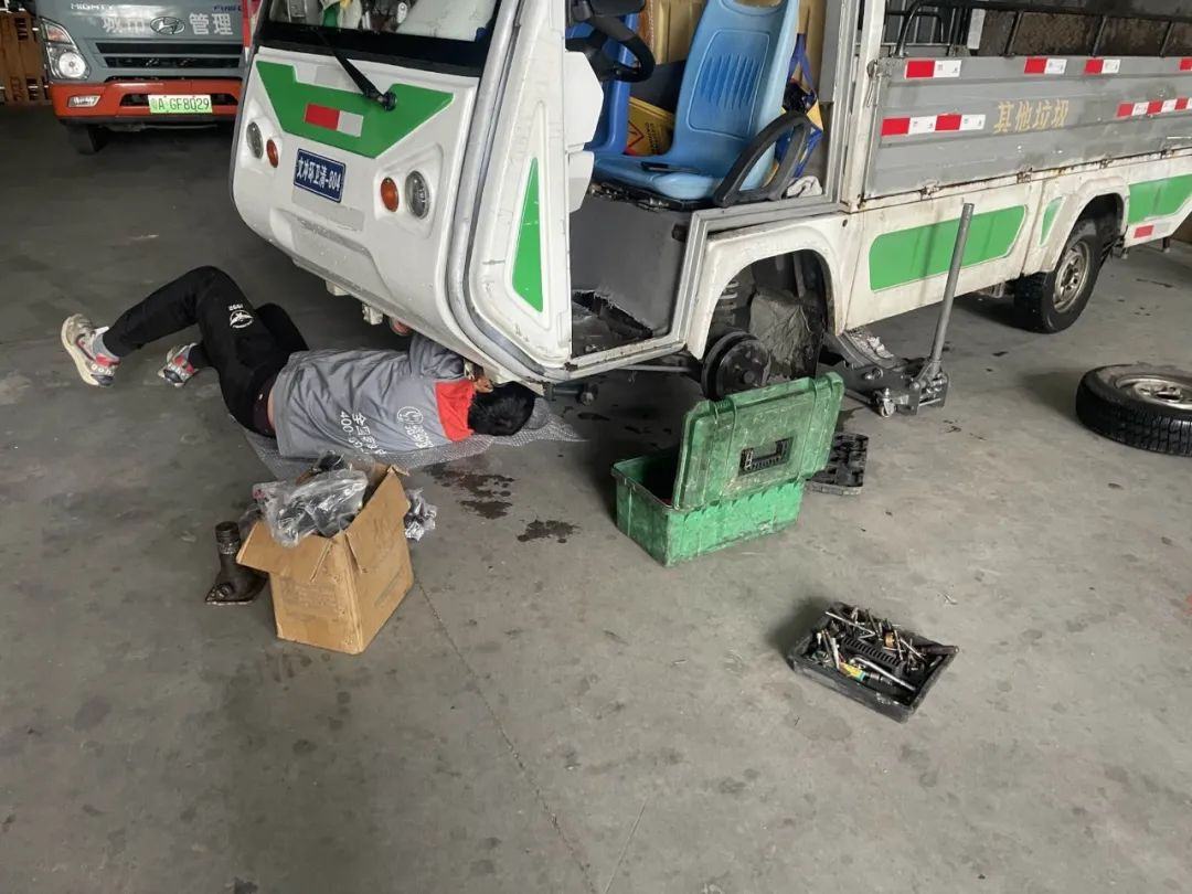在美洁中心停车场,每到车辆定期维保日,现场便呈现出一片忙碌而有序的景象。专业维修人员早早到位,按照既定流程,有条不紊地对环卫作业车辆展开全方位“体检”。首先是外观检查,维修人员仔细查看车身是否有刮痕、凹陷,车漆是否有脱落迹象,确保车辆外观整洁、无明显损坏,因为这不仅影响城市形象,也可能对车辆的密封性和防护性造成影响。