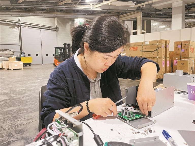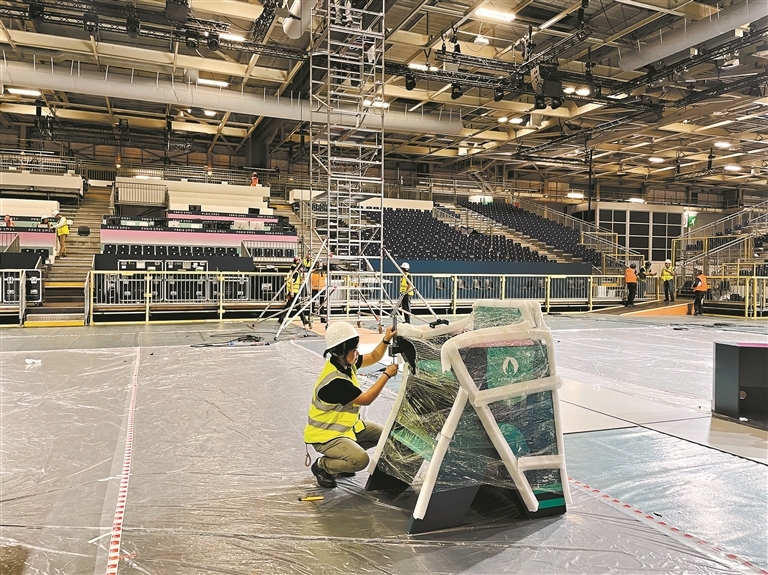 陪伴她飞抵时尚之都的行李中,不是漂亮的衣裙,而是安全帽与劳保鞋。抵达巴黎的那个七月的清晨,她和同事们顾不上倒时差,便按照巴黎奥组委的要求,穿上劳保鞋,戴好安全帽,进入乒乓球比赛场馆开工。装有11张裁判台、18张裁判椅、28个发球机的数十个大木箱早已安静地等着他们拆卸和安装。