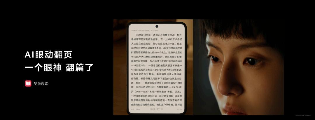 在此前华为官方的预热视频中,其实这款新形态手机已经被看出了端倪。从华为终端发布的预告视频可以看到,视频呈现了一个泳池经多人在左右两侧推动后,最终变大,突出:“1610,大开想象”,此次业界首款阔折叠发布后,也成为手机领域的新形态、新物种。在这款手机上,还能体验到全新的黑科技。首发搭载的AI眼动翻页功能,可以对眼球运动轨迹进行追踪,当用户看到页末时,会根据用户眼球运动自动翻页。