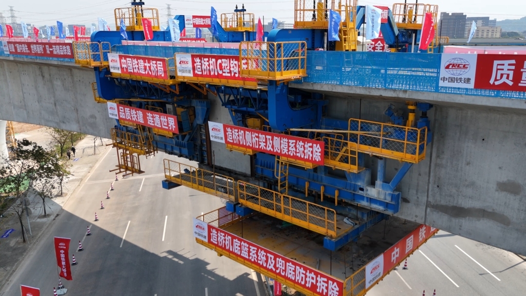 3月19日,重达100吨的智能悬臂造桥机(下称“智慧造桥机”)在深江铁路与中山市横四线公路交岔路口成功完成拆卸并精准下放落地。这一节点的实现,不仅标志着中国铁建大桥局在深江铁路11标项目应用智慧造桥机施工取得突破,更为未来智能建造技术在高铁建设中的规模化应用奠定实践基础。