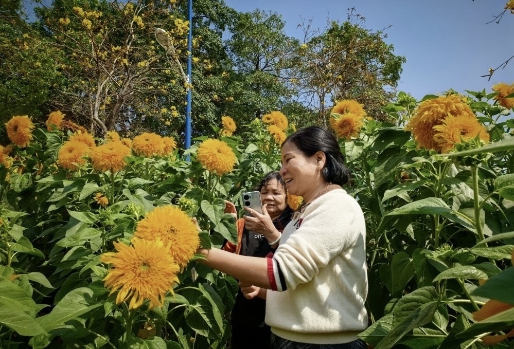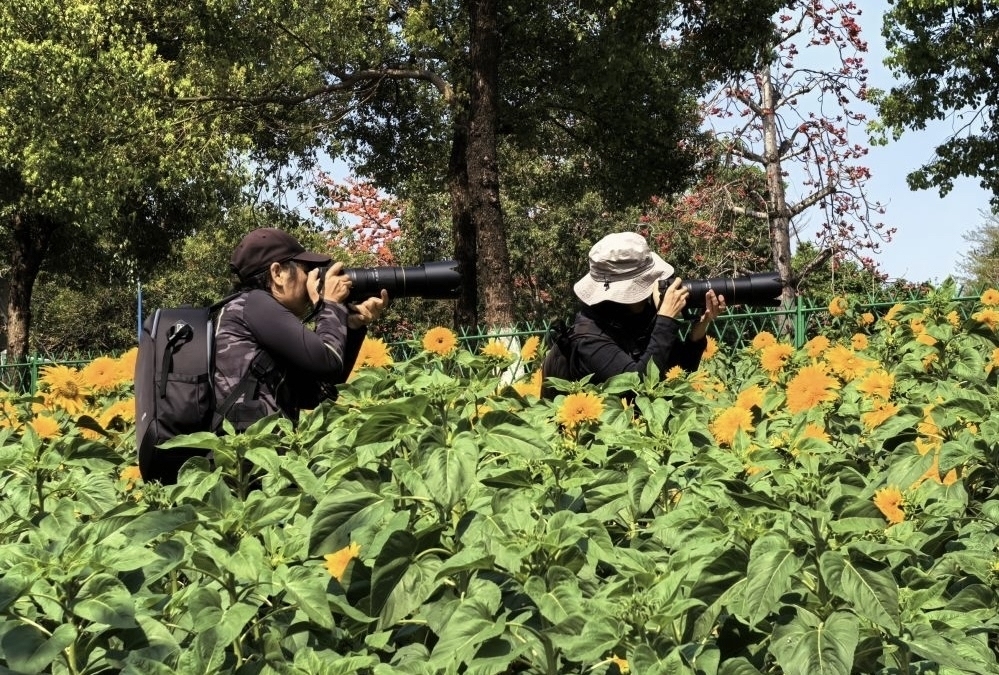 泰迪熊向日葵花海 目前,泰迪熊向日葵花海正值盛花期,吸引了众多市民前来打卡。在花海前,记者偶遇了一位摄影发烧友邓女士,她和朋友正手持专业的相机,对着泰迪熊向日葵狂拍不已。“这个品种的向日葵真是太漂亮了,拍照效果特别棒!”邓女士兴奋地告诉记者,她和朋友已经拍了很多满意的照片。她的朋友特意从广州市区赶来,对这里的景色赞不绝口:“真没想到,这里不仅有如此壮观的向日葵花海,还有那些百年古樟树,金黄色的花海与嫩绿的古樟树新叶相互映衬,生机勃勃,简直美极了!”邓女士的朋友表示,这次带的镜头都不够用了,下次一定要多带几个镜头再来采风。路过的市民也纷纷拿出手机,或拍照留念,或拍摄小视频与朋友分享这份春日的美好。