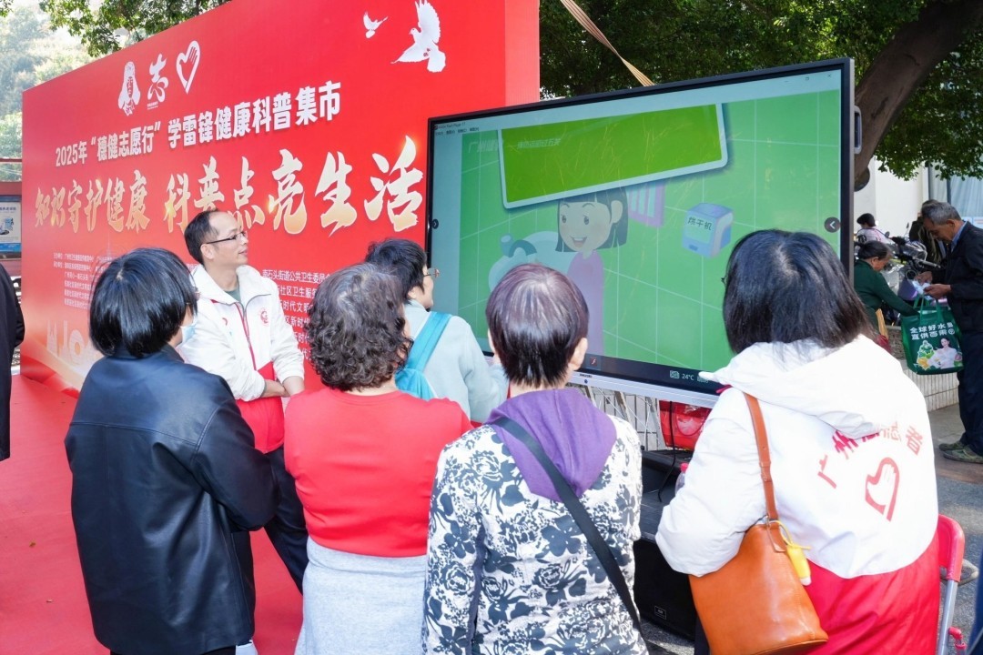 活动现场,身着红马甲的志愿者构成流动风景线。志愿者们发挥精干、敬业的雷锋精神,前期作了细致的社区访谈和问卷调查,找到了本地居民所期待的服务内容,现场又通过询问居民收集接受服务后的想法,为下一次服务做准备。这种“需求导向”的服务模式,正是广州市健康科普志愿服务的创新亮点。