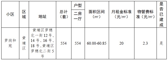本次推出分配的房源为2024年度户籍家庭公共租赁住房集中分配时未成功匹配的房源。房源点为萝岗和苑,总套数554套,均为两房一厅。萝岗和苑毗邻地铁水西站(7号线、21号线),小区总建筑面积约200万平方米,分两期建设,共建住宅65栋,房屋18827套,其中公共租赁住房27栋,9547套。区内设置幼儿园、九年一贯制中小学、综合商业体、公交站场等配套公建。