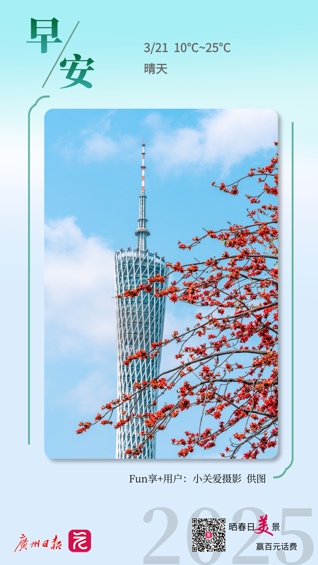 【晴天不打烊!下周广州气温飙升至30℃】广州市气象台预计,3月21日—24日广州天晴干燥,白天温暖舒适(25~28℃),早晚寒冷(10~14℃)。3月25日—26日广州云量有所增加,最高气温回升至29~30℃。详情>>>