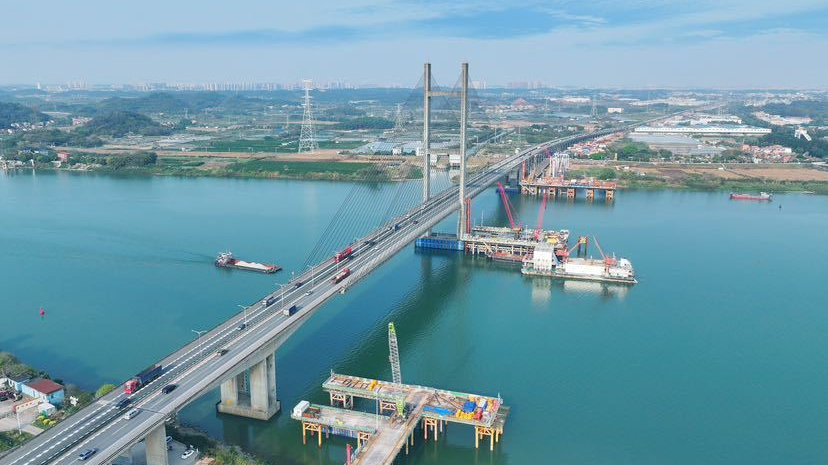 【广肇高速改扩建项目金马大桥首个主墩承台浇筑完成】新建金马大桥是广肇高速改扩建项目的“咽喉”工程,全长1936.6米,横跨西江,连接佛山市三水区与肇庆市高要区,采用分离增建,相当于在西江上再“复制”一座新金马大桥。详情>>>