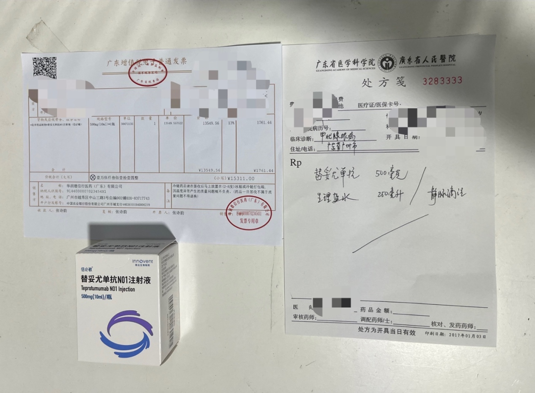 3月19日,由信达生物研发的中国首个、全球第二个IGF-1R抗体药物——替妥尤单抗N01注射液由广东省人民医院内分泌科关海霞主任医师开出华南首张处方。作为中国甲状腺眼病治疗领域70年来首款新药,国产替妥尤单抗N01注射液(信必敏®)于今年3月14日获得国家药品监督管理局批准上市,将甲状腺眼病从无药可治,带入靶向化、高效化、无创化、可及化的新时代。