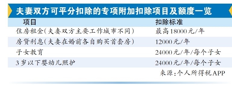 个税专项扣除能给老百姓省多少钱?记者梳理发现,个税专项扣除包括子女教育、继续教育、大病医疗等七项内容。已婚的纳税人在填写专项附加扣除时,会发现部分专项扣除项目可以选择夫妻一方100%扣除或双方分别50%扣除。那么,应该如何选择才能节税更多呢?记者通过计算发现,将扣除项目分配给收入较高的一方,可以有效减轻家庭税负。