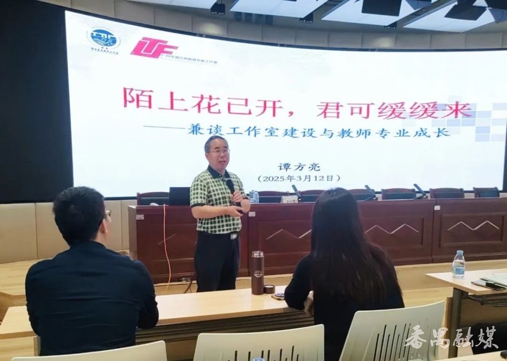 启动仪式后,正高级教师、特级教师、广东仲元中学附属学校校长谭方亮,以《陌上花已开,君可缓缓来——兼谈工作室建设与教师专业成长》为题,从个人工作室建设历程、工作室品牌建设实践、如何保持工作室的生命力等方面,分享了工作室建设的宝贵经验和丰硕成果。
