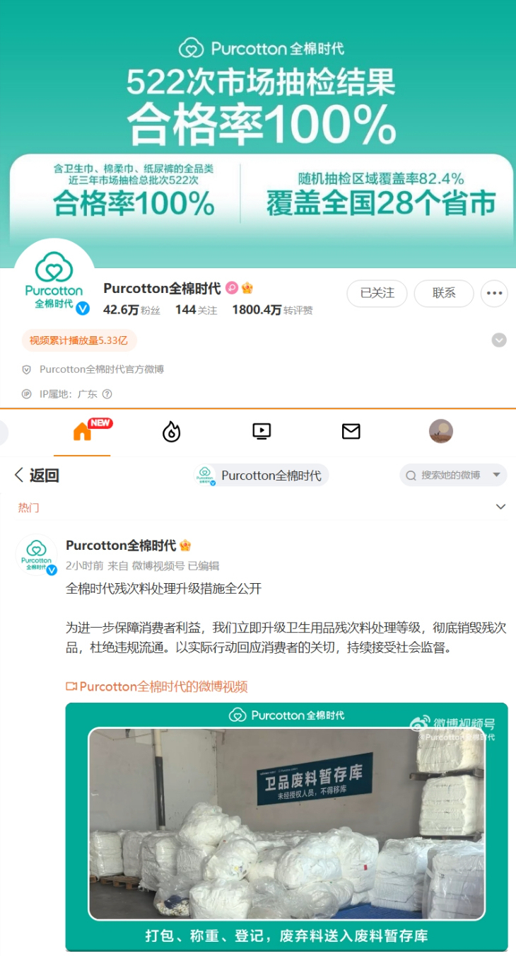 为进一步保障消费者利益,切断残次料被二次非法利用的链条,全棉时代决定立即提升对卫生用品残次料的处理等级,强化残次料的管控力度,采取三项措施。