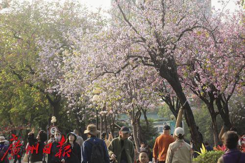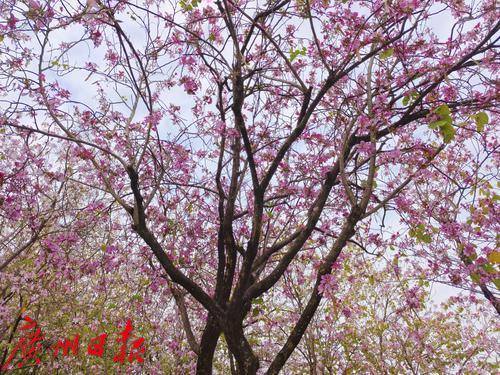 粉紫色的花朵如云似霞,将公园装点得如诗如画。