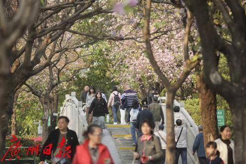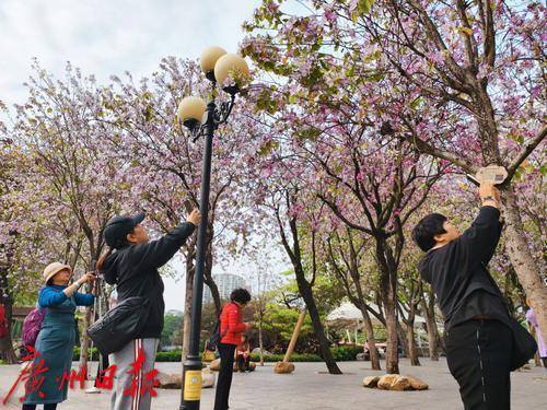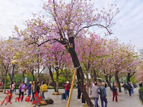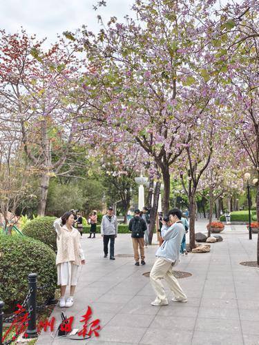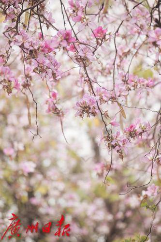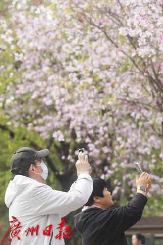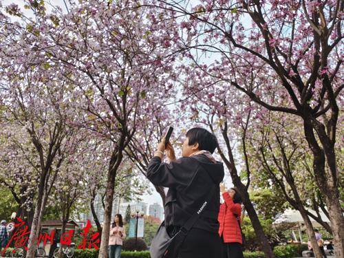 随着三月春风的轻拂,广州东湖公园内的宫粉紫荆花迎来了盛放的季节,粉紫色的花朵如云似霞,将公园装点得如诗如画。这些天,公园里游人如织,市民和游客纷纷前来拍照打卡,记录下这美好的春日时光。 在阳光的照耀下,宫粉紫荆花显得格外鲜艳,它们或簇拥枝头,或垂挂枝间,微风拂过,花瓣轻轻摇曳,散发出淡淡的香气。游客们或驻足观赏,或拿起手机、相机捕捉这动人的春色。孩子们在花下嬉戏,老人们在花旁闲谈,一幅幅和谐的画面展现在眼前。东湖公园的宫粉紫荆花不仅为城市增添了一抹亮色,也为市民提供了一个亲近自然、放松心情的好去处。