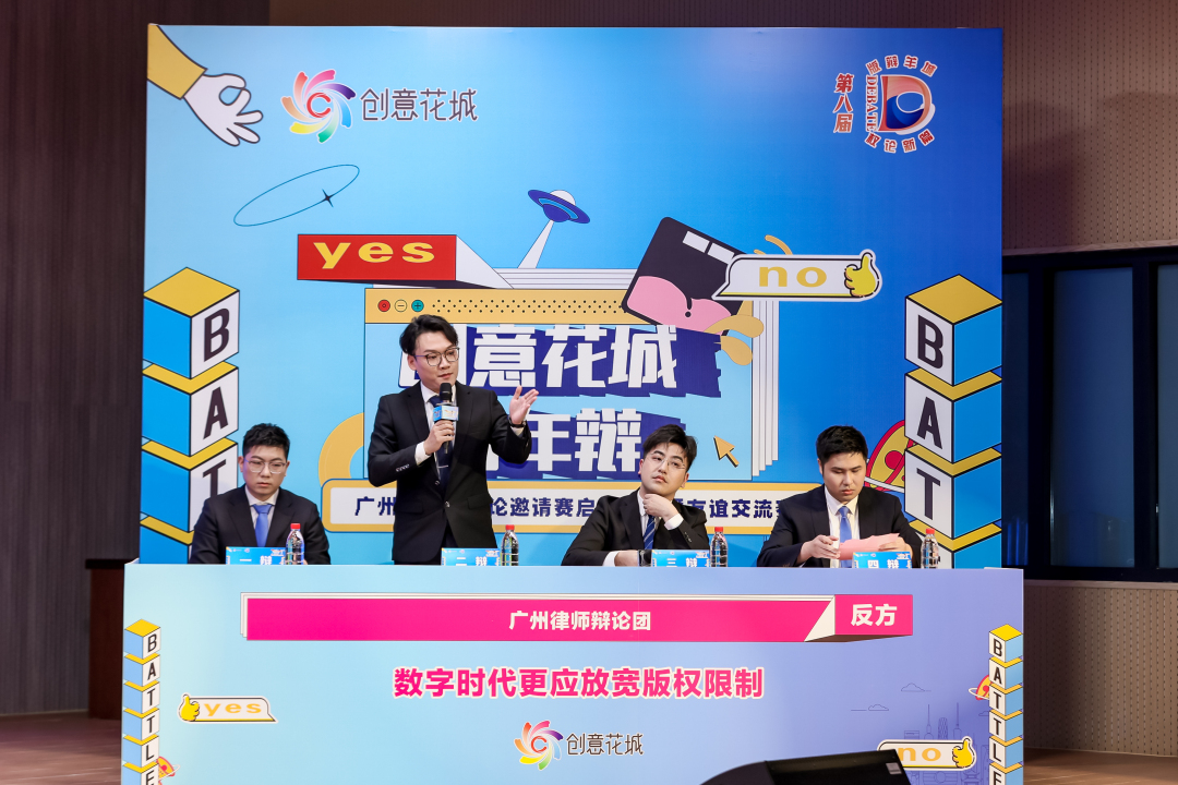 在第八届“创意花城·青年辩”广州大学生辩论邀请赛启动仪式上举行的友谊交流赛,以“数字时代,更应加强版权保护,还是更应放宽版权限制?”为辩题,大学生与律师团队展开跨界对决。第七届辩论赛冠军队伍广东金融学院法学院代表队与广州律师辩论团代表队同台竞技、以辩会友,在青春活力与专业魅力之间较量角逐中,为本届赛事拉开帷幕。