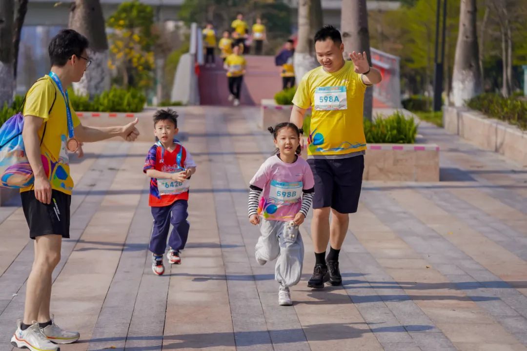 亲子组则从蕉西水闸分岔至蕉西路绿道,全程路线环绕蕉门河两岸,最后到达滨水广场冲破终点,完成比赛。