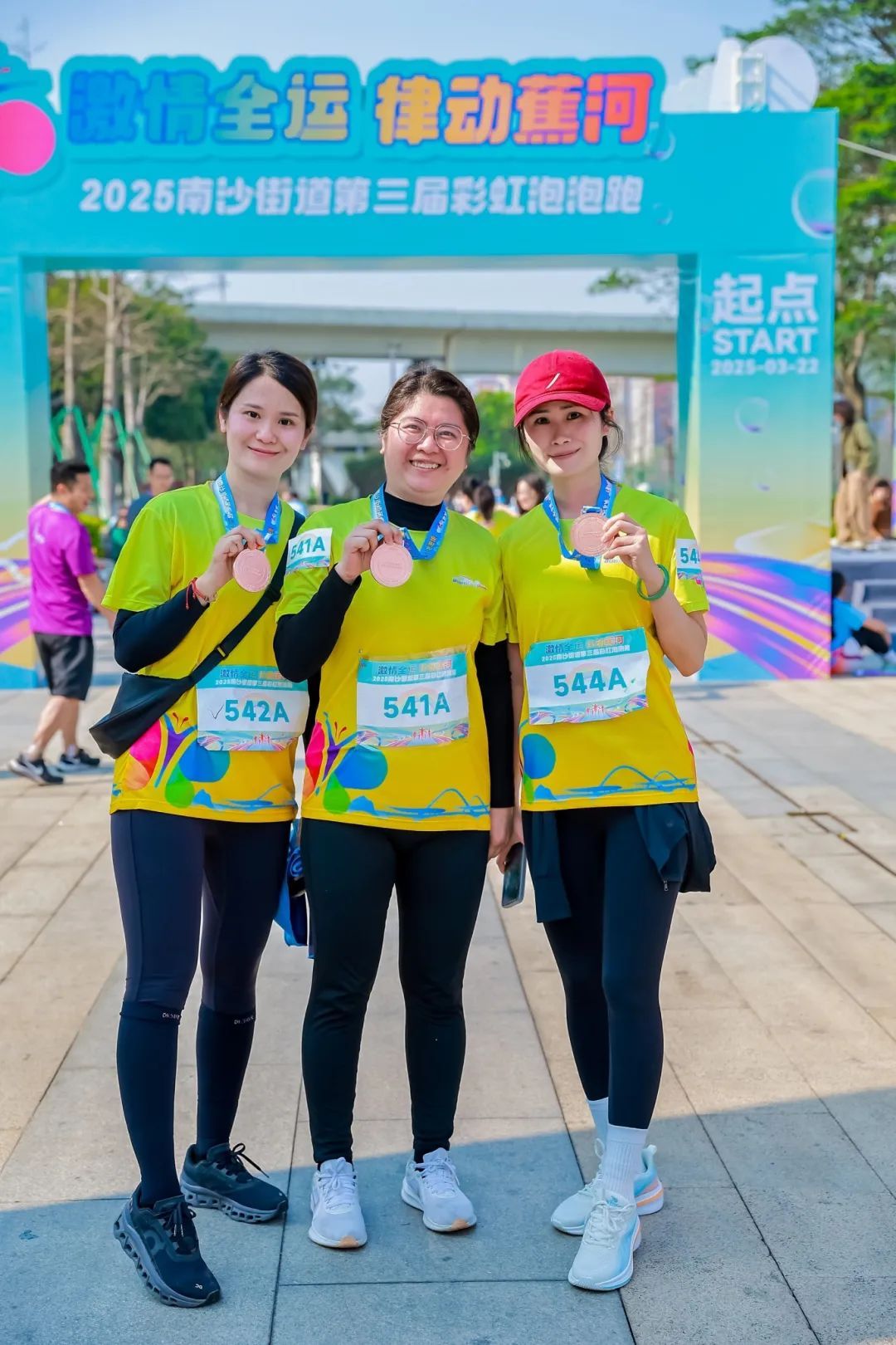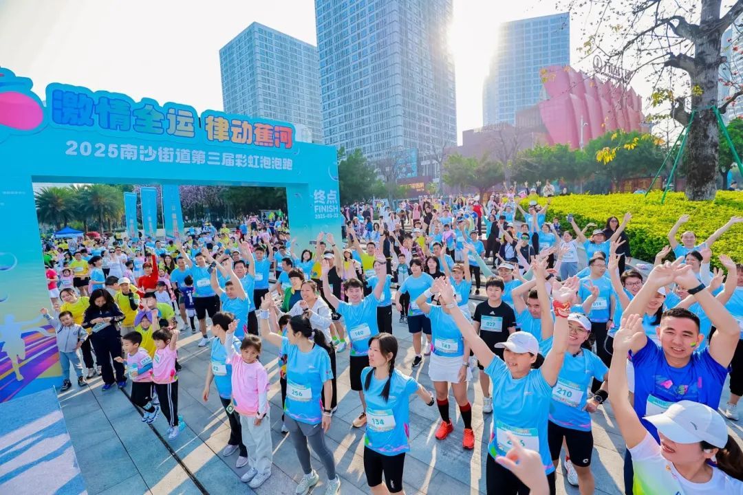 3月22日,2025年南沙街道第三届彩虹泡泡跑在蕉门公园活力广场热力开跑!600名跑者以彩虹为裳、以泡泡为翼,在8千米碧道花海与5千米滨海绿道间纵情穿梭,用跃动的身影为第十五届全运会奏响全民健身的序章,书写湾区南沙的活力篇章!