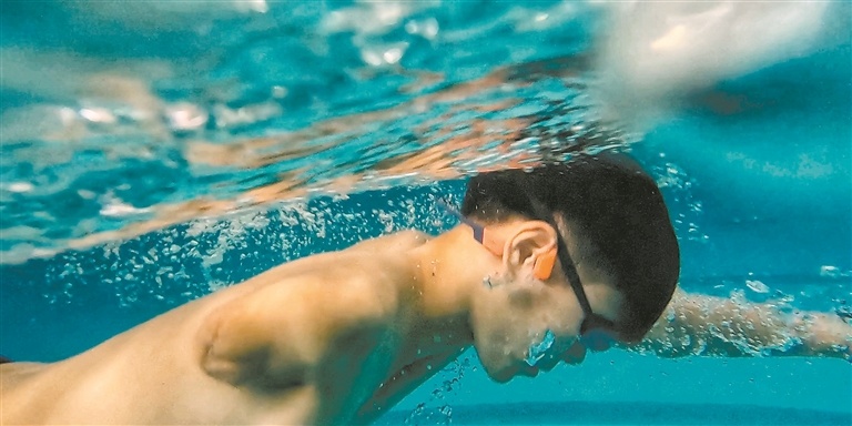 独臂“飞鱼”李奕宗进行日常的自由泳训练。